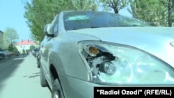 Дар рӯи ҳавлии баландошёнае дар маҳаллаи “Гипрозем” чаҳор мошин истодааст, ки шиша ва чароғҳояшон шикастааст. Сокинон алвонҷаки рӯи ҳавлиро нишон доданд, ки гуруҳи ҳамлаварон онро низ вайрон кардаанд.