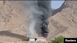 Ба дасти Радиои Озодӣ чанд акс ва наворе расид, ки дар он дида мешавад, як қатор чаппа шуда, оташ гирифтааст.