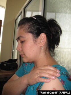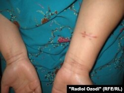 Ӯ мегӯяд: “Он вақт нав ҳомиладор будам. Аз дег хӯрок кашиданӣ будам, ки шавҳарам ба тарафам аслиҳа рост кард. Гуфтам, ки мабодо назанед, ки маъюб мешавам. Ханда карда тирро ба тирдон гузошт ва як тир ба пои ростам зад. Ба замин нишастам, хун аз поям рехтан гирифт. Ҳозир он тир мондагӣ, 4-5 соли охир ҷои захм ва поям сахт дард мекунад, азобам медиҳад.”